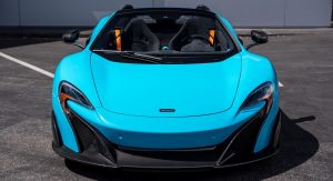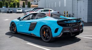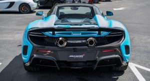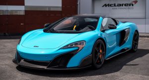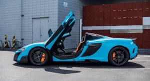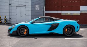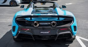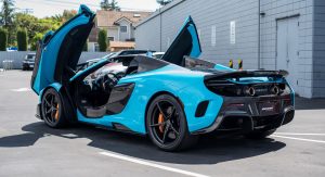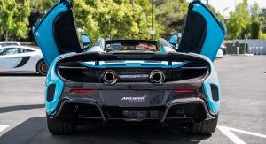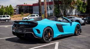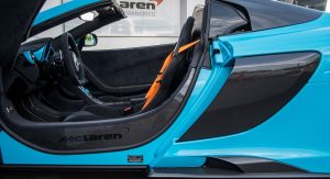 Recently delivered by McLaren San Francisco and displayed throughout Monterey Car Week, this 675LT Spider has been painted in a stunning shade dubbed Fistral Blue. Unlike any other blue we’ve seen adorning a McLaren, the color screams for attention under direct sunlight and suits the aggressive and in-your-face character of the LT to an absolute tee.