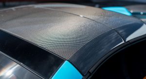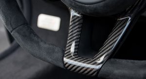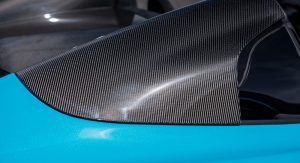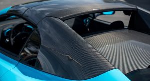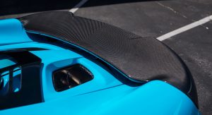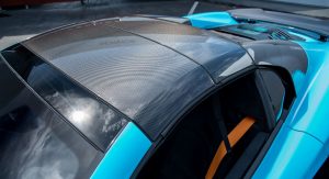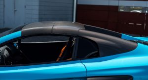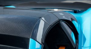 Alongside the blue paint, the owner has optioned out every piece of gloss carbon fiber available. That means the front splitter and fins are made from the exotic, lightweight material as are the side skirts, side air intakes, rear diffuser, wing mirrors and the entire rear wing. What’s more, even the rear buttresses and hardtop are finished in carbon fiber ensuring this LT looks unlike any other.