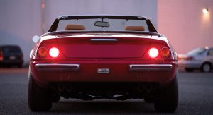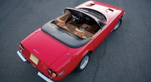 Unlike the Corvette-based replicas used in the show (and so many chop-jobs that ensued), the Prancing Horse you see here is entirely authentic. It’s the 91st of only 121 convertibles (and 1,406 coupes) made, making it at least as rare as the V12 roadsters that followed decades later.