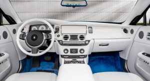 Finally another bespoke Dawn was delivered to noted Rolls collector Don Brinkeroff. It pays homage to the 1907 Rolls-Royce Silver Ghost with matte silver bodywork, silver Spirit of Ecstasy inlays in the piano black fascia, and pine green leather with black trim.