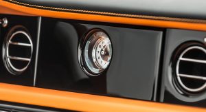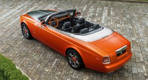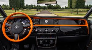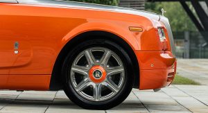Commissioned by the dealership in the swanky Los Angeles-area enclave, the Rolls-Royce Phantom Drophead Coupe Beverly Hills Edition was presented at Pebble Beach this past weekend. It features a rather… um, eye-catching treatment, painted in Orange Metallic with a silver-tone trim, matching orange wheel hubs, and an open cockpit upholstered in Mandarin leather wand trimmed in Piano Black veneers.