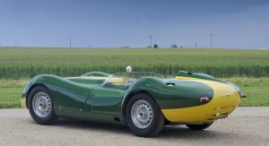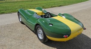 Power comes from a 3.8-liter inline six that’s a reproduction of the Jaguar D-Type engine used in the original. It produces 337 horsepower and 295 lb-ft of torque, and with just 1,850 pounds to motivate, it’ll rocket to 60 in under four seconds and top out over 180 mph.