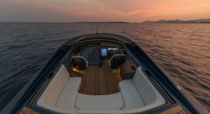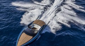 Elsewhere, Aston Martin has outfitted the powerboat with a steering wheel, throttle handles and a joystick manufactured from polished metals. There’s also an advanced navigation and entertainment system while below deck, owners will enjoy a toilet, air conditioning, a large bed, coffee machine and a microwave oven.