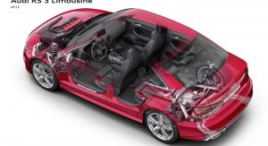 The mill in question is now 26 kilograms (57.3 lb) lighter than its predecessor, and it employs a dual injection system, as well as Audi’s valvelift (variable valve control system) for a bit of extra oomph. Like previous reports suggested, it now develops no less than 400 PS (394 hp) and 480 Nm (354.0 lb-ft) between 1,700 rpm and 5850 rpm, making it the most powerful five-cylinder on the market.