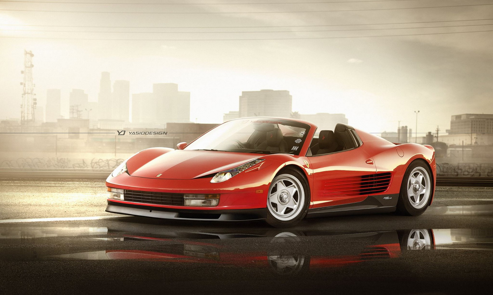 This, on the other hand, is not your average 458 Spider but has been digitally infused with some retro nuts and bolts inspired by the classic Testarossa. The details can be seen on the front bumper and include the additional lights, on the sides, where the rear vents carry that unique design of the model that remained in production from 1984 to 1996, and end with the classic’s trademark alloys.