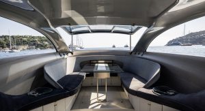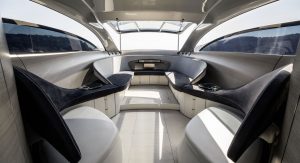 Mercedes-Benz Style recently teamed up with Silver Arrows Marine to help launch a range of yachts. That starts with the Arrow 460 Granturismo, whose interior has been revealed for the first time at the Monaco expo. The design blurs the lines between the vessel’s interior and exterior space with windows that are retractable to let the wind blow through and electronically tinted (using Benz’s Magic Sky technology) to let the light shine (or not shine) into the cabin. Production is slated to begin “in the coming months,” with the first deliveries earmarked for later next year.