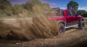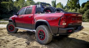 Ram installed a supercharged 6.2-litre V8 under the bonnet, providing a massive 575hp to all four wheels via a Torqueflite eight-speed automatic gearbox. The Rebel TRX concept is now able of triple digit speeds, even when traveling on surfaces other than paved roads.