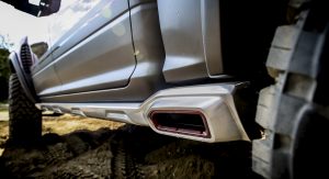 In order to cope with the increased horsepower and become a true performance pickup truck, the new Rebel TRX concept features a Dynatrac Pro 60 rear axle with an electronically limited slip differential and 1.5-inch axle shafts. The front axle is a standard item, fitted with custom CV half-shafts to allow a wider track.