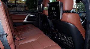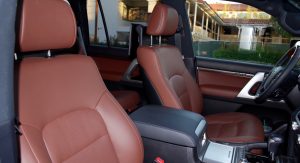 In contrast, the more expensive, but pretty much the same, Lexus LX570, looks fussy with its grafted on corporate Lexus face and flashier wheels. You’ll get noticed, for sure, though.