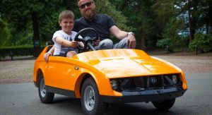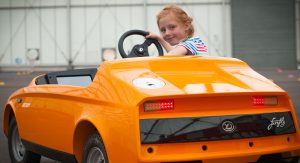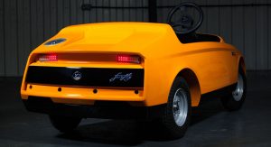 The idea with the Firefly is to bring that point of entry down as low as five years old using this specially designed vehicle. The pint-size car features an independent suspension, rack-and-pinion steering, hydraulic disc brakes, reverse gear, LED headlights and taillights, turning indicators, adjustable driver’s seat… the works. Even a tablet-like dashboard with speedometer, clock and power reserve meter.