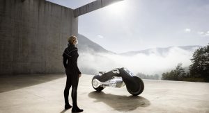 The new BMW Motorrad Vision Next 100 was revealed at an exhibition in Los Angeles, joining the previous concepts from BMW, Mini and Rolls Royce. The new concept envisions a future of biking in a connected world, where motorcycling is more about escaping the everyday routine and less of a mean of transportation.