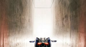 Despite adopting the dynamic appearance of a naked bike, the Motorrad Vision 100 features some clever arrangement of surfaces in order to protect the rider from wind and weather as effectively as a full fairing. In addition, the steering system is frame-assisted which means that when the rider turns the steering wheel, it adjusts the entire frame in order to change direction. The so-called Flexframe is also adjustable, allowing a light steering at standstill and a more rigid one at higher speeds.
