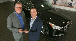 Russ Johnson is the first retail customer of the Genesis G90 luxury sedan and took the keys to his new car in a special ceremony held at Round Rock Genesis in Texas.