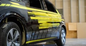 Further tweaks to the Niro’s exterior include gloss black paint instead of the vehicle’s original silver finish, as well as bright yellow accents.