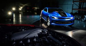 As for the 2017 COPO Camaro program, Chevrolet is finally introducing the show car (serial number 01 of 69), with its supercharged 350 engine, custom Weld racing wheels and a unique “anodized” concept version of the production Hyper Blue Metallic exterior color. Just like previous editions, the 2017 COPO Camaro is designed for the NHRA’s Stock Eliminator classes. This means that all production race cars are fitted with racing chassis and suspension components, a custom manual steering rack, a fuel cell with built-in high-pressure fuel pump, as well as a unique rear axle system in place of the Camaro’s independent rear axle.