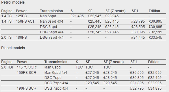 The Czech automaker’s first-ever seven-seater SUV will start from £21,495 OTR, for which you get the entry-level 1.4 TSI model in ‘S’ trim, featuring LED daytime running lights, 17″ alloys, leather multifunction steering wheel, manual air conditioning, smartphone connectivity and Front Assist.