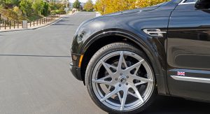 Out of all the Bentaygas we’ve currently seen wearing custom wheels, this is the first time we’ve seen one riding on a set of some massive 24″ Forgiato Turni-M alloys.