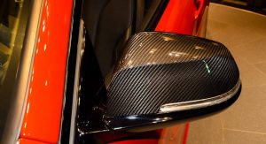 The M Performance kit includes the sleek carbon fiber mirror caps, black kidney grille and the Alcantara-covered sporty steering wheel – a similar configuration to this 435i Coupe we saw last year.