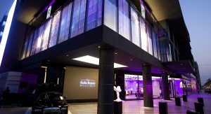 The exterior features giant vectorized pixel-animation screens, and there’s year-round valet parking. All this in addition tot he 10,000-square-foot showroom operated by the same company on Dubai’s Sheikh Zayed Road.