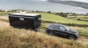 Jeep used one of their 75th Anniversary Grand Cherokee models in order to tow the three and a half tonne mobile showroom to the location across the rugged North York Moors. There, they also displayed the rest of their 75th Anniversary range as well as a famous Willys Jeep.