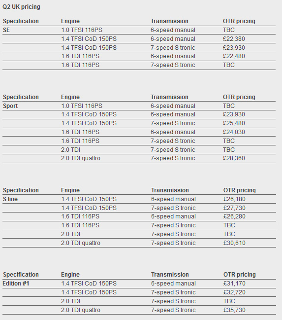 Living in the UK and thinking about picking up a small but premium crossover? Audi has given us bits and pieces of its price list for the new Q2, but has now released the full list.