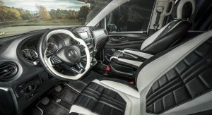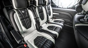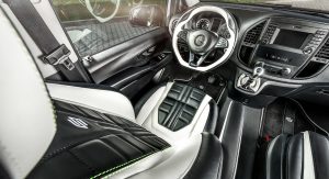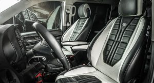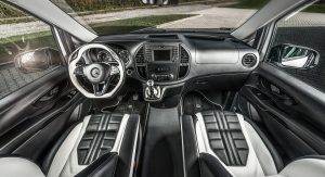 Inside, it’s a black & white leather combo across most surfaces, from the mats to the seats, the steering wheel, the shifter base and the arm rests. It’s not the most luxurious cabin Carlex have ever mustered up, but it’s still considerably sportier than your regular Vito interior.