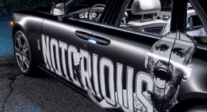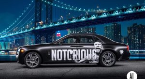 Ahead of the event, Rolls-Royce Motor Cars North America shared a few images of McGregor’s customized Ghost, featuring a matte black exterior, white leather interior and a large ‘Notorious’ decal on the side, featuring the man himself.