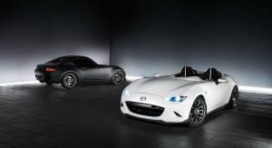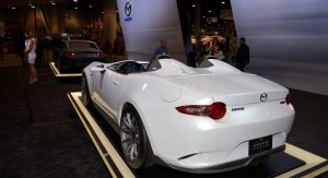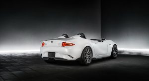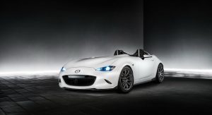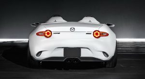 As for the MX-5 Speedster Evolution concept, some might remember its debut at last year’s SEMA Show as well as its appearance at the Goodwood Festival of Speed over the summer. Now however, Mazda engineers have managed to shave even more weight off – approximately 100 lbs (45 kg), bringing the total to a scant 1,980 lbs (898 kg).
