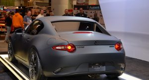 “We wanted to give MX-5 RF Kuro a stealth look to complement its sleek profile, providing subtlety and purpose,” said design manager Ken Saward. “As we move our brand in a direction we call ‘Mazda Premium,’ we want to embrace our longstanding motorsports heritage and reach forward with breathtaking designs like the MX-5 RF.”