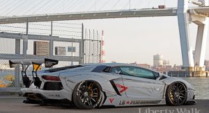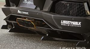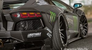 In this case, Liberty Walk has chosen not to mess with the Aventador’s 6.5-liter V12, meaning that it puts out 700 PS (690 HP) and 690 Nm (507 lb-ft) of torque.