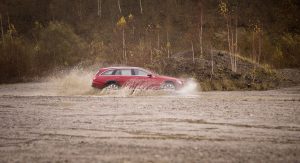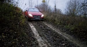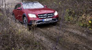 The new E-Class All-Terrain comes with the brand’s 4Matic all-wheel drive as standard and a 29mm higher ground clearance when in Normal driving mode (15mm from the air suspension + 14mm from the bigger wheels/tires), with owners able to choose between five transmission modes, including a model-specific All-Terrain function which tunes the chassis and powertrain for off-road driving.