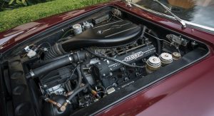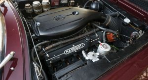 It passed through a number of different hands throughout its lifetime, and along the way was fitted with the later model’s 4.2-liter V8. It’s finished in deep red Amaranto with tan Connolly leather and Borrani wire wheels, and remains – in the words of the auctioneer – “one of the most historically significant road-going cars to bear the Trident.”