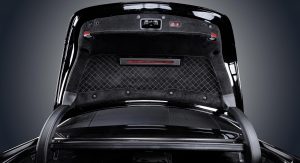 Additionally, the interior includes a fitting amount of black alcantara, including on the steering wheel and parts of the headliner. Other custom touches include Piano Gloss Black accents instead of the standard wood trim as well as a trunk bathed in alcantara.
