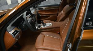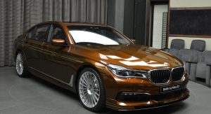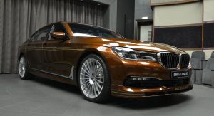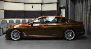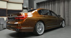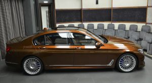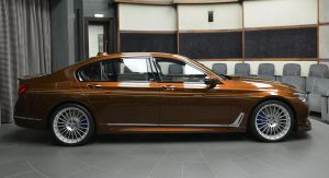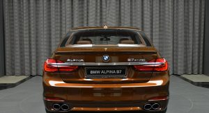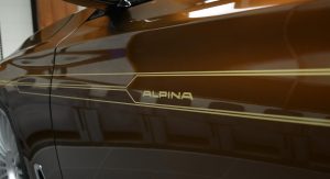 For starters, it is the only one painted in this unique shade dubbed Chestnut Brown and complemented by a Tartufo interior. Typically, brown cars look horrendous. However, this Alpina manages to pull it off thanks to the golden tinge the paint has and the bright gold accents found on the custom pinstriping and badging. A set of tightly-spoked silver wheels then complete the exterior looks.