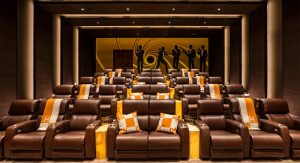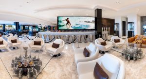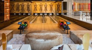 Beyond the impressive man-cave, the house supports 12 bedrooms, 21 bathrooms, six bars, a fitness center, two wine cellars, a massage room and spa, three kitchens, an 85-foot infinity pool and what CNBC says is the most advanced home theater room of any U.S. home. Other selling points include a giant candy wall, four glass foosball tables, a four-lane bowling alley and a TV in the main living area that stretches an incredible 30 feet.
