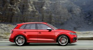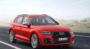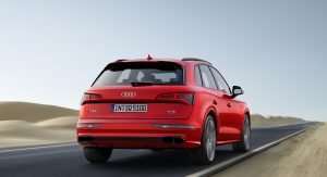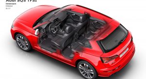 The more aggressive bodywork over the regular new generation Q5 isn’t there for show only as the SQ5 ditches the standard 2.0-liter turbo for a 3.0-liter TFSI V6 which delivers 349 horsepower (354 PS) and 369 lb-ft (500 Nm) of torque to all four corners, through an 8-speed automatic transmission. In this form, the SQ5 needs just 5.1 seconds to go from rest to 60 mph (96 km/h).