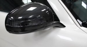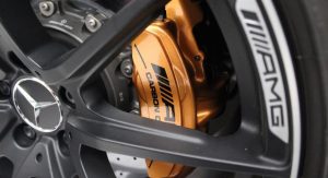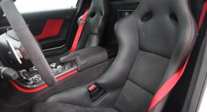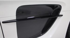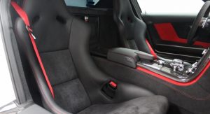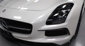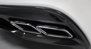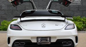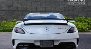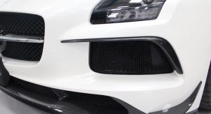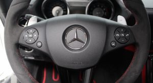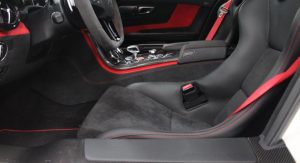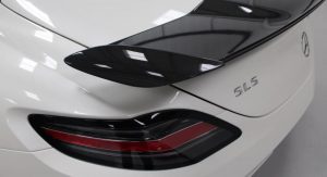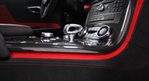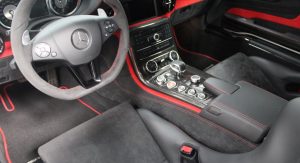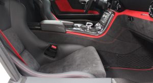 It’s finished in Designo Mystic White and fitted with an optional aerodynamic package that sits on top of the numerous features found in the cabin, including carbon fiber trim, DVD player with navigation system, automatic climate control, leather and Alcantara, and red elements.