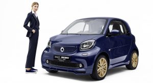 Smart and Brabus have the answer. The two German companies collaborate to offer the Smart Brabus Tailor Made program, which allows customers to customize their city car to their own specific taste. Like this one-of-a-kind showpiece designed by stylist Veronika Heilbrunner.