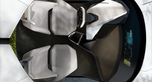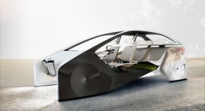 In terms of its overall design, the i Inside Concept is free of any doors, a traditional roof or even a windshield or rear window. Among its key design touches are completely enclosed front and rear wheels and a minimalistic interior design dominated by the HoloActive Touch system and an interactive screen stretching the length of the dashboard.