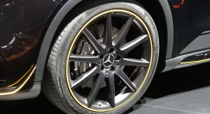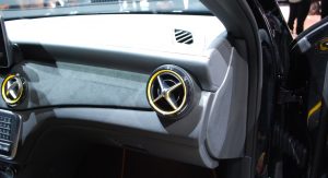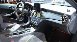 Sixty miles per hour comes from a standstill in 4.3 seconds, according to Mercedes, courtesy of a 2.0-liter turbo that’s been boosted to give off 375 horsepower now, as if the old engine weren’t outrageous enough. Shown here, there are bright yellow accents everywhere – courtesy of the optional AMG Performance Studio Package, because why not?