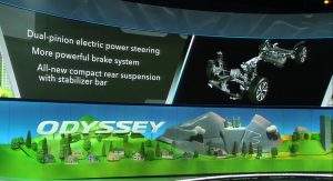 “This new Odyssey raises the stakes for family-friendly packaging, performance and technology in the minivan segment,” said John Mendel, Executive VP of American Honda Motor Co. “In all aspects of its design, the new Odyssey is made to keep every member of the family happy, no matter the seating position, no matter the destination.”