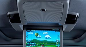 – Connected Rear Entertainment System (streaming video on the ceiling-mounted 10.2″ system, which includes PBS Kids, iHeart Radio, Spotify and more),