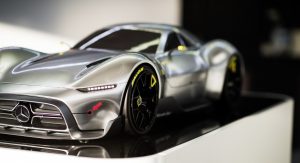The first one is a scale model that seems to be on par with the upcoming hypercar developed by Mercedes-AMG, up to a point, sans the roof scoop.