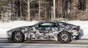 Despite the similar design cues (and identical wheels), the shorter front and rear overhangs and smaller rear side windows suggest what we could be looking at a prototype for the new Vantage.