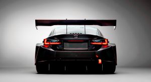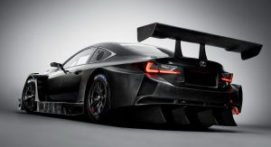Take this Lexus RC F GT3, for example. The racing version of Toyota’s upscale muscle coupe is about to make its European debut at the Geneva Motor Show next week, and is pictured here with all its aerodynamic and mechanical accoutrements, but no livery. Just black bodywork, vents, and wings all over.