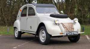 Produced in 694 examples and with less than 100 believed to be left, this Citroen 2CV, with its two engines (one at the front and one at the rear), two gearboxes, two fuel tanks and four-wheel drive, is consigned by ClassicCarAuctions for their Birmingham sale, on April 1 and 2. It’s estimated that it will change hands for £60,000-£65,000 (~$74,500-$81,000).
