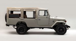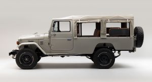 It’s a 1981 Toyota Land Cruiser – more specifically a long-wheelbase FJ45, known as the “Troopy” because (as you might have guessed) the type was often used for transporting troops. The FJ Company – which has made a name for itself restoring and modifying classic Land Cruisers – recently got its hands on this vehicle after it served as transportation for the Colombian National Guard, a local university, and an NGO for troubled teens.