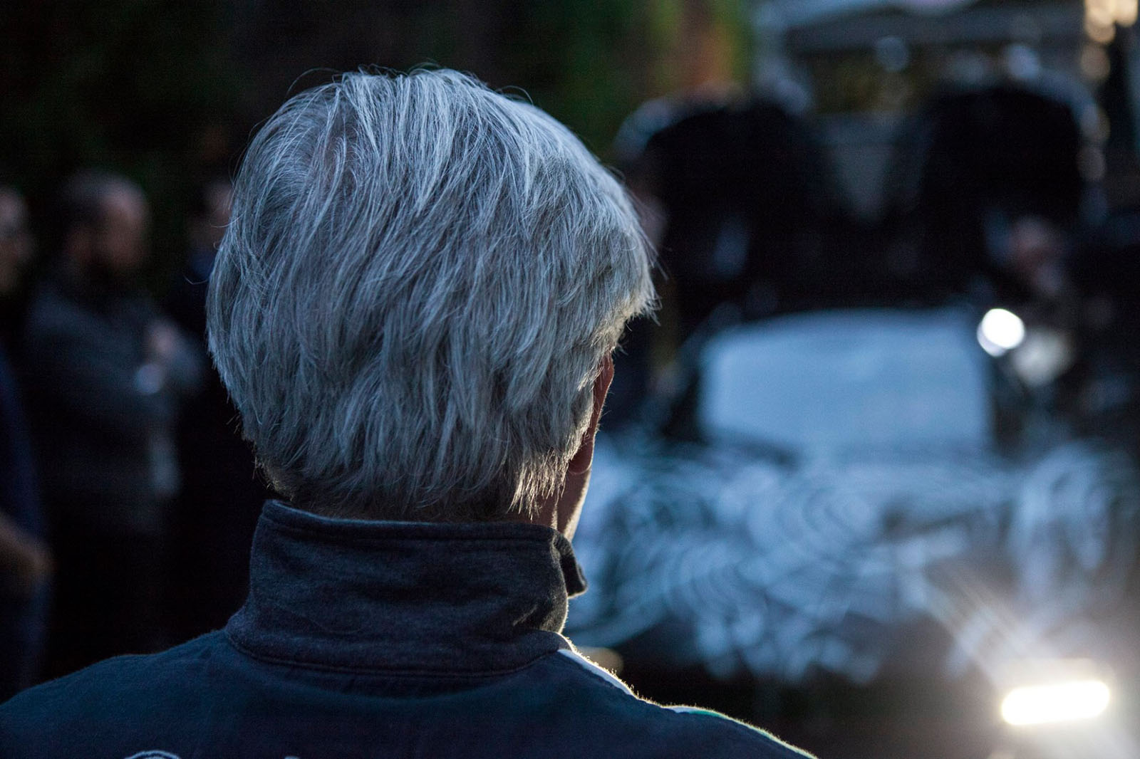 This one is ostensibly a shot of the back of founder Horacio Pagani‘s head, but it’s the blurred, camouflaged prototype he’s looking at that has us intrigued. As fuzzy as it is, it seems pretty clear to us that those are top-hinged gullwing doors stretching in their open position towards the sky.
