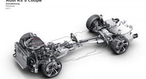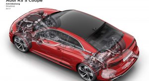 As Audi’s first Audi Sport model in the new RS design idiom, the new RS5 features a newly developed bi-turbo V6 unit good for 450 PS (443 HP) and 600 Nm (443 lb-ft) of torque.