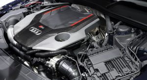 Powering the all-new RS5 is a 2.9-liter TFSI V6 bi-turbo engine, which Audi built from the ground up. It produces 450 PS (331 kW) as well as 600 Nm (443 lb-ft) of torque, which is an increase of 170 Nm (125 lb-ft) compared to the previous generation model. In a straight line, it will go from zero to 100 km/h (62 mph) in 3.9 seconds and max out at 280 km/h (174 mph) with the optional dynamic package.